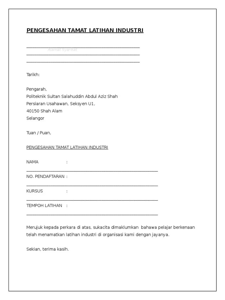 Surat Pengesahan Tamat Latihan Industri / Aqefziyyad Aqefz Twitter